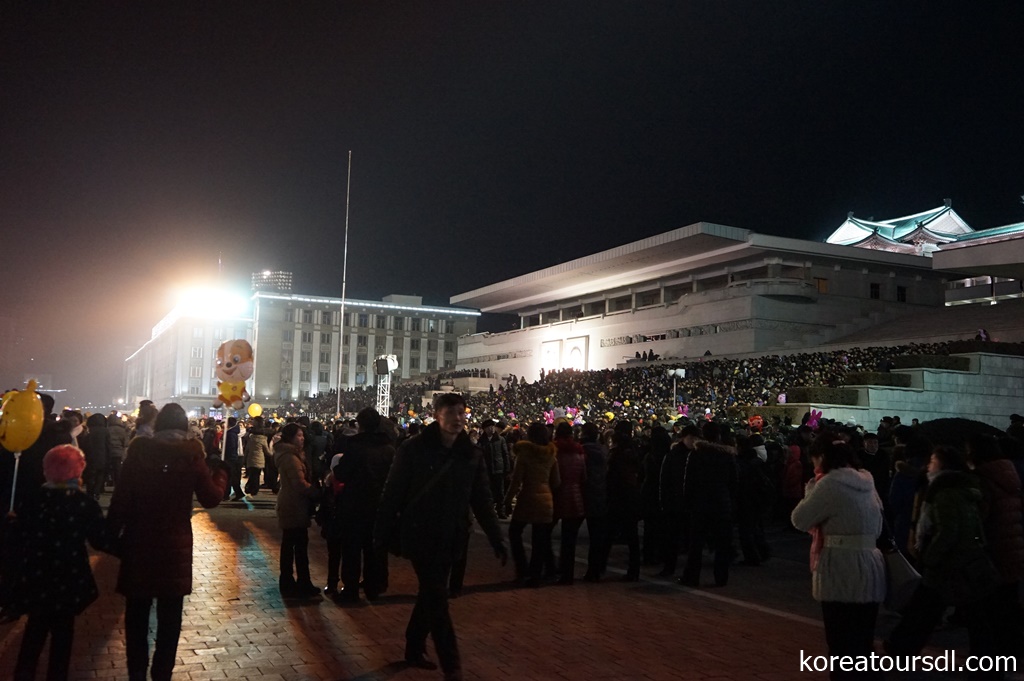 - カウントダウンを金日成広場の花火大会で2020を迎える